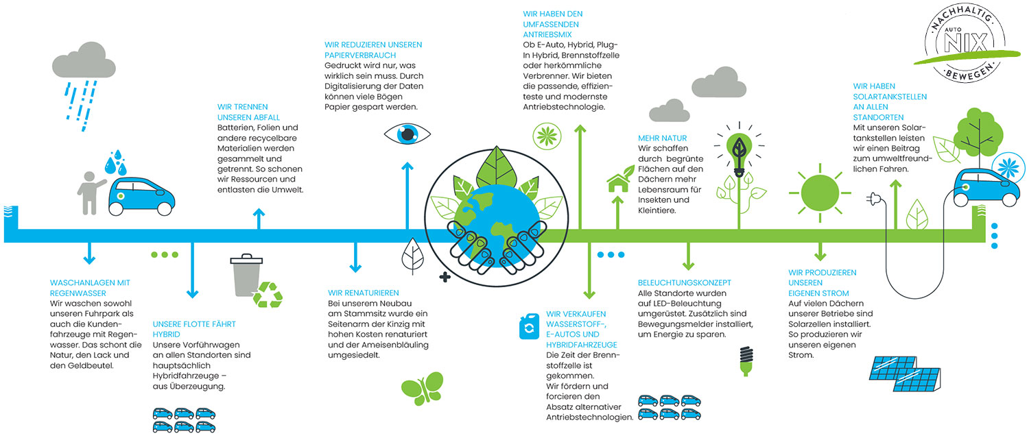 Entdecken Sie viele bereits umgesetzte nachhaltige Maßnahmen vom Autohaus NIX.