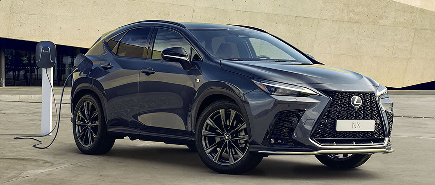 Energieverbrauch Lexus NX F-Sport 450h+ (Plug-in Hybrid): 2.5 l-Benzinmotor 136 kW (185 PS), Elektromotor vorne 134 kW (182 PS) und Elektromotor hinten 40 kW (54 PS), Gesamtsystemleistung 227 kW (309 PS) gewichtet kombiniert: 3,2 l/100 km und 12,0 kWh/100 km; CO2-Emissionen gewichtet kombiniert: 72 g/km; CO2-Klasse: B, Kraftstoffverbrauch bei entladener Batterie kombiniert: 6,8 l/100 km, CO2-Klasse bei entladener Batterie: E, elektrische Reichweite (EAER) 74 km, (EAER City) 97 km.