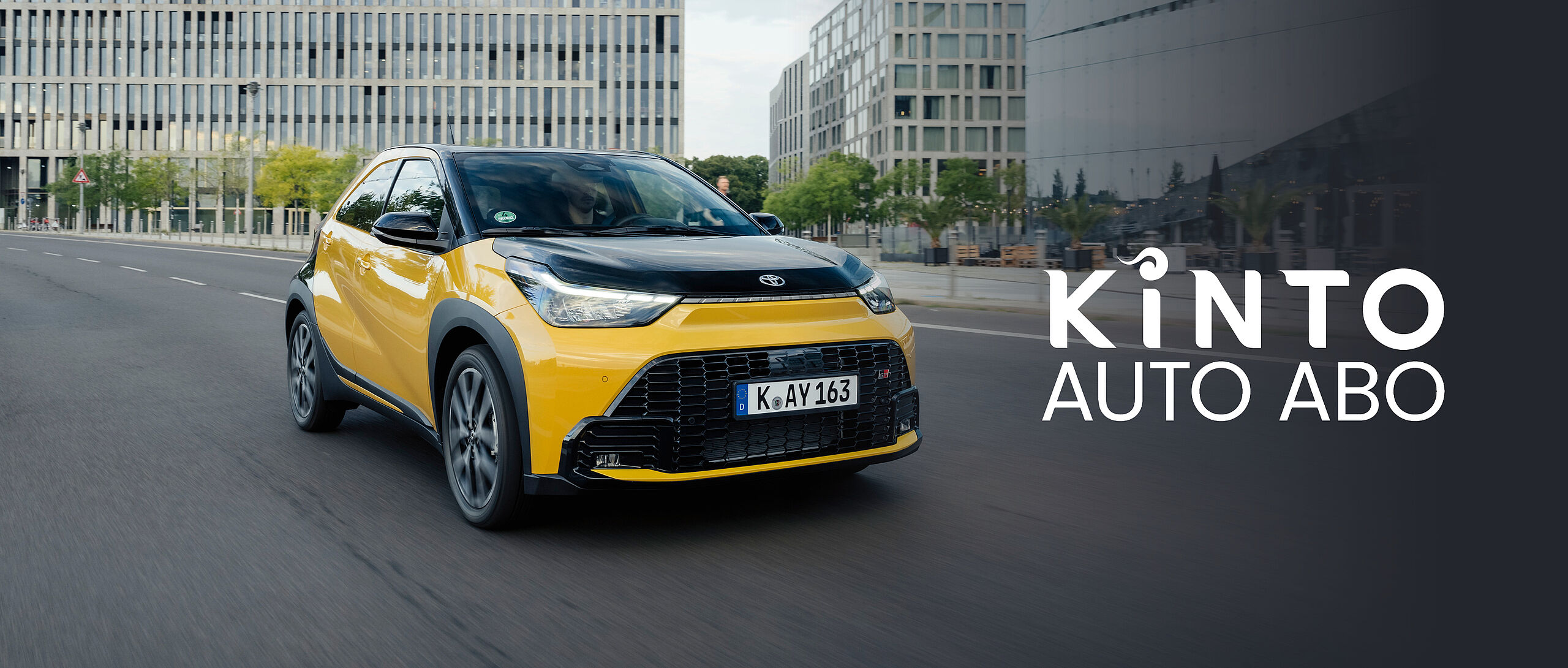 4Ein unverbindliches Auto Abo Angebot der KINTO Deutschland GmbH, Toyota-Allee 5, 50858 Köln für den Toyota Aygo X Hybrid Teamplayer: zzgl. Anzahlung 1.490 €, Vertragslaufzeit: 12 Monate, monatliche Laufleistung: 1.250 km, 12 mtl. Raten à 299,00 € inkl. MwSt., Überführungskosten, jahresgerechter Bereifung und Services (Versicherung, Wartung, Kfz-Steuer, Zulassung, HU/AU). Entsprechende Bonität vorausgesetzt. Die Kosten für Kraftstoff sind vom Kunden zu tragen. Alle Angebotspreise verstehen sich auf Basis der unverbindlichen Preisempfehlung der Toyota Deutschland GmbH, Toyota-Alle 5, 50858 Köln, per September 2025, inkl. MwSt. Dieses Angebot ist für Privat- und Gewerbekunden gültig. Nach Ablauf der Vertragslaufzeit verlängert sich der Vertrag automatisch um jeweils einen weiteren Monat, wenn er nicht mit einer Frist von einem Monat gekündigt wird. Das Angebot gilt nur bei Anfrage und Genehmigung bis zum 31.03.2026. Individuelle Preise und Angebote erhalten Sie bei uns im Autohaus.