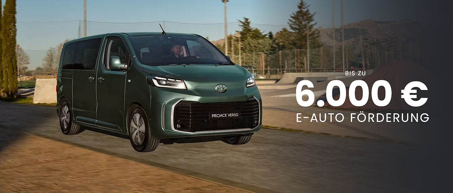4Ein unverbindliches Toyota Easy Leasing-Angebot der Toyota Kreditbank GmbH, Toyota-Allee 5, 50858 Köln für den Toyota Proace Verso Electric Active: Leasingsonderzahlung 6.000,00 €, Gesamtbetrag 21.440,40 € zzgl. Überführung i.H.v. 1.490,00 €, jährliche Laufleistung: 10.000 km, Vertragslaufzeit 36 Monate, 36 mtl. Raten à 428,90 €. Das Leasingangebot gilt nur für Privatkunden bei Anfrage und Genehmigung bis zum 31.03.2026 und entspricht dem Beispiel nach §6a Abs. 4 PAngV. Unser Autohaus vermittelt ausschließlich Leasingverträge der Toyota Kreditbank GmbH.