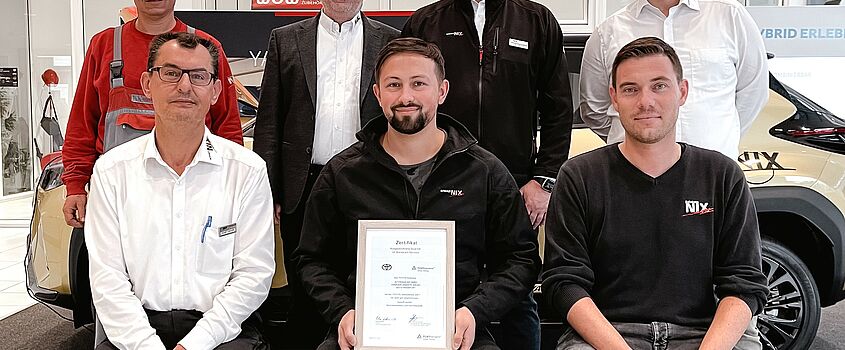 "Autohaus NIX gehört zu den 'Top Performern' und den Betrieben, die alle Fehler gefunden haben und Ihre Kunde zu Fans machen, die Sie gerne weiterempfehlen. Dazu möchten wir Ihnen und Ihrem Service-Team gratulieren und für die hervorragende Arbeit danken", gratuliert Toyota Deutschland. Auf das ausgestellte Zertifikat sind wir sehr stolz.
